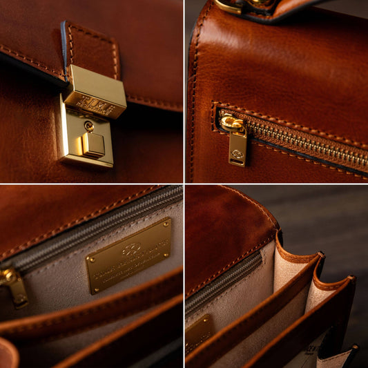 Valigetta piccola in pelle da uomo, unisex - Walden: Marrone cognac