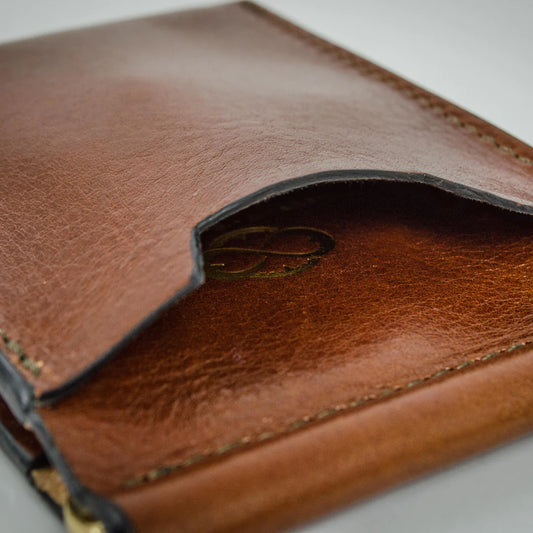Portafoglio con fermasoldi in pelle - Tom Jones: Cognac
